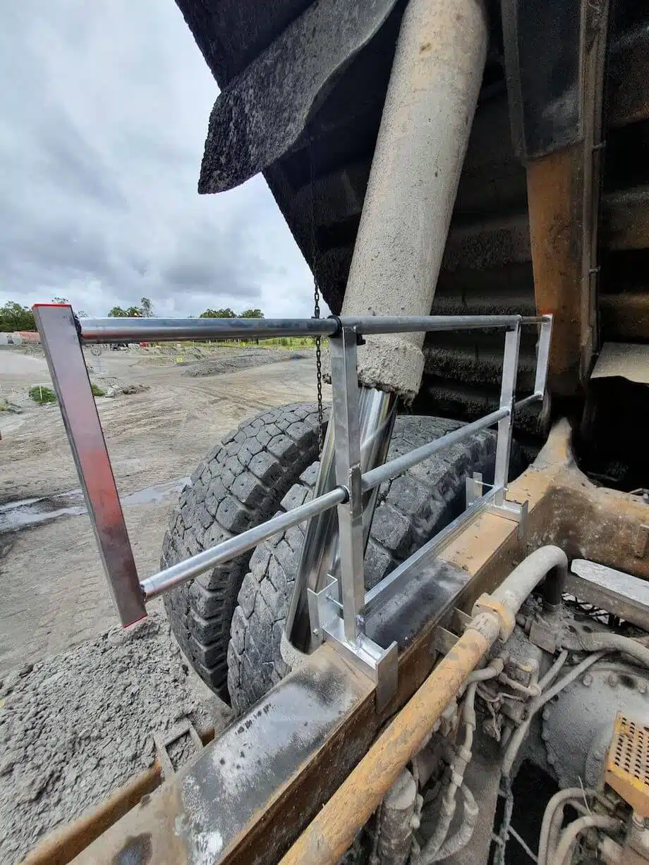 Designed to clamp onto the chassis of CAT and Komatsu Haul Trucks, our adjustable chassis guard rail frame is made from high quality materials and provides an adjustable clamping width to suit different chassis styles. The clamping system of the Telescopic Guard Rail Frame is the perfect solution for a safety lock onto the chassis frame.