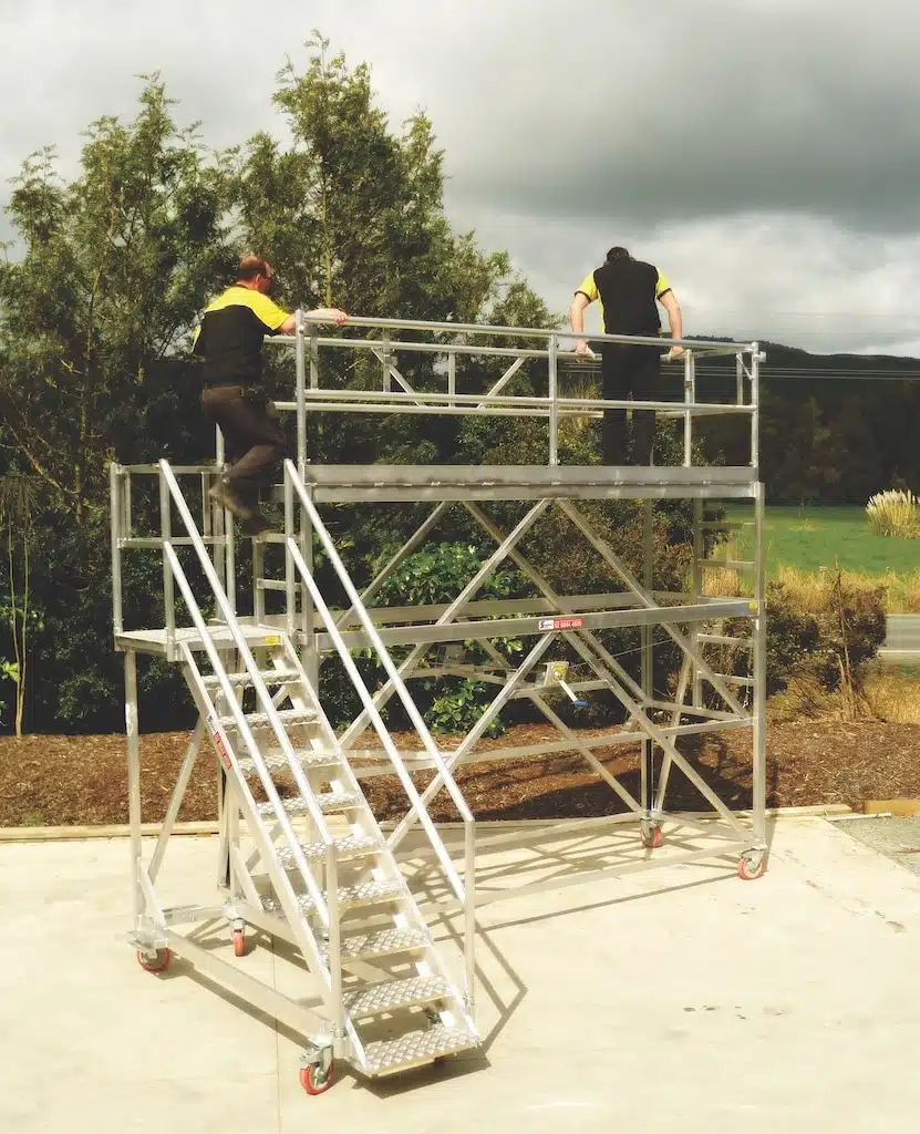 The Adjustable Height Platform’s design adheres to strict safety standards, meeting the AS 1657:2018 requirements. The platform’s stability and manual height adjustability minimise the risk of accidents, thus boosting on-site efficiency. Its compliance ensures that teams can proceed with their work confidently, keeping safety at the forefront.