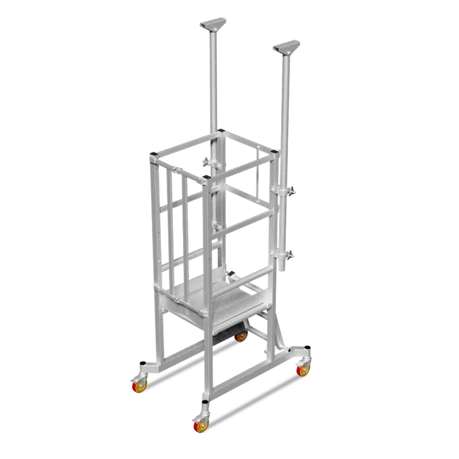 With two height settings, 0.75m and 1.025m, this podium is designed to be easily wheeled through tight spaces and deployed in a matter of seconds. Eliminating the need to dangerous step ladders, the platform adds fall protection, with full-surround hand rails (welded) and a much wider wheel base for anti-tipping properties. The platform is made from high-grade aluminium and comes in either chequer plate pattern for grip, or perforated for grip and good drainage in outdoor or wet conditions. Also SafeSmart’s Scaffold ceiling props are included for added safety and stability when using the podium on open air heights such as balconies and elevated slabs.