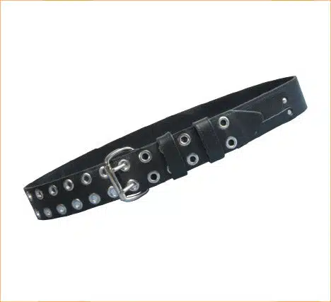 This Double Prong Scaffolding Belt with Reinforced Eyelets in Black, a heavy-duty leather scaffolding belt that shows you mean business. It’s made from heavy-duty British leather and is available in black leather.