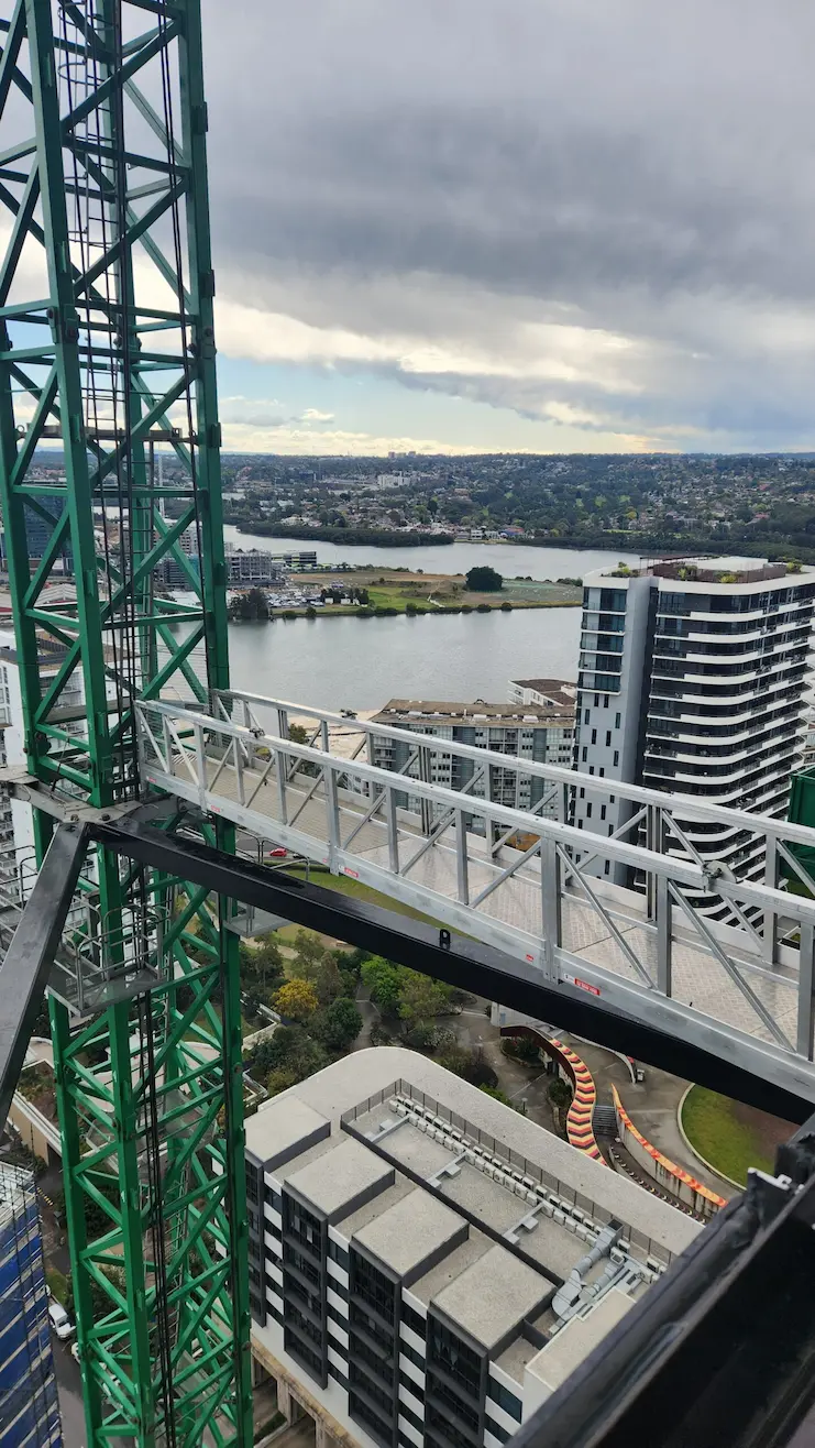 For bridge crane access from higher up the construction project, our client (Barangaroo Project) needed a bridge that would not only be safe and efficient, but also be able to be craned to different floors.