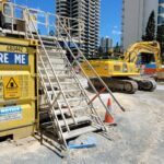 SafeSmart Access’s Double Width AdjustaStairs offer all the same features as our single-width AdjustaStairs. However the double width stairs bring added efficiency and safety to the worksite. Ideal for temporary batter access, navigating pits, trenches, deep excavations, and moving between multi-level construction floors, these stairs can be set at various angles while ensuring a flat surface for secure footing, thanks to the 1200mm wide self-leveling treads. This means the stairs can suit any height within the stairs range limits stated under the variations tab.