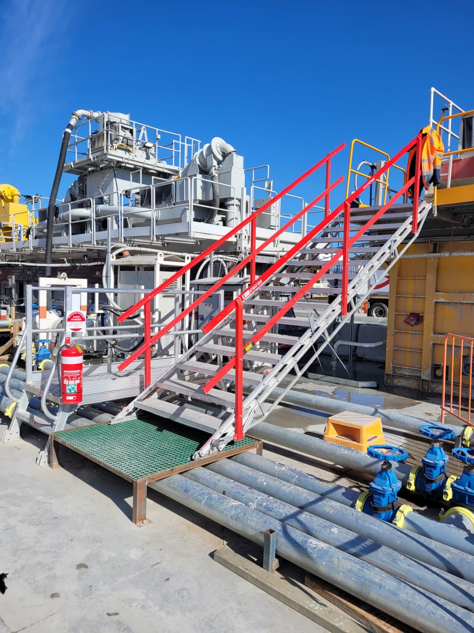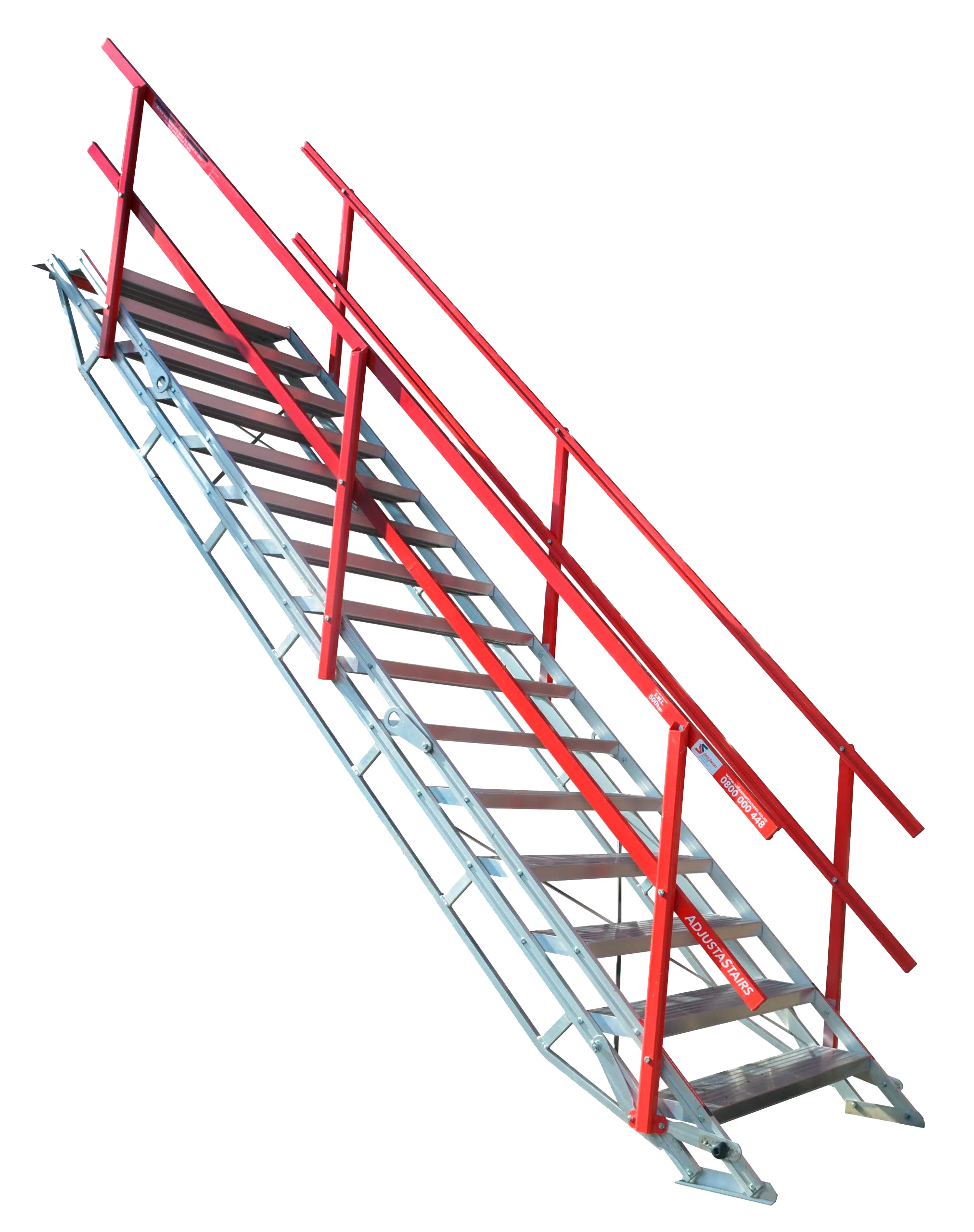 Built from lightweight yet heavy duty aluminium, AdjustaStairs are easily portable across site and can be conveniently folded flat for storage or transport. These units can be assembled by just two people in seconds and are easily joined together in-line to create longer stair sets.