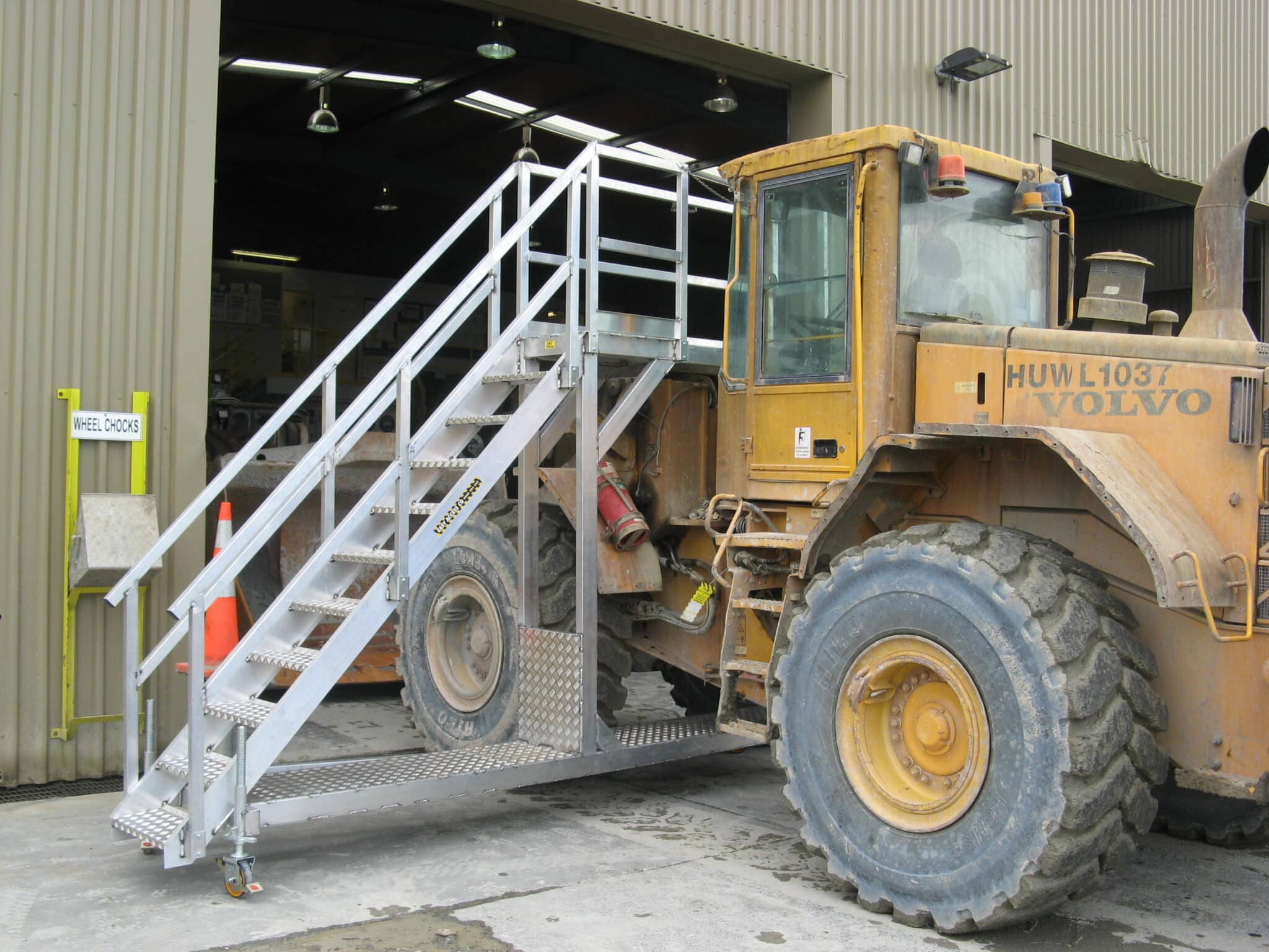 For a safer and faster maintenance process, SafeSmart has developed a unique range of front-end loader work platforms for many clients that suit most makes and models, including Caterpillar, Volvo, and Komatsu, among others. All systems are designed to fit snugly around the shape of any machinery, getting the worker as close as possible without any dangerous leaning or overreaching.