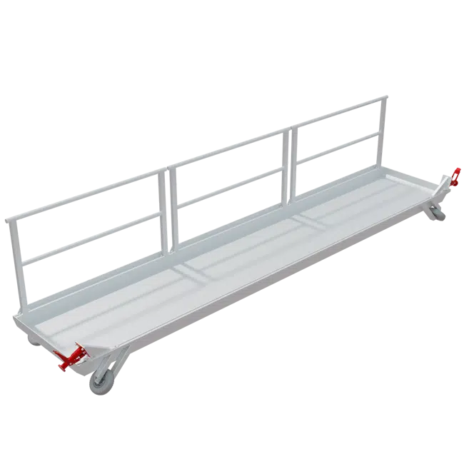 Our Mobile Tunnel Bridges are custom made to span across the width of tunnels to provide level access. The angled wheel’s enables the platform to move through the tunnel as required.