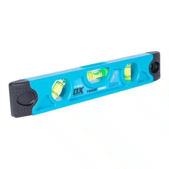 The OX Pro Torpedo Level is lightweight with 3 easy-to-read vials and a magnetic V-groove for pipe work and scaffolding. This 230mm long level is designed for the workplace with tough rubber end caps.