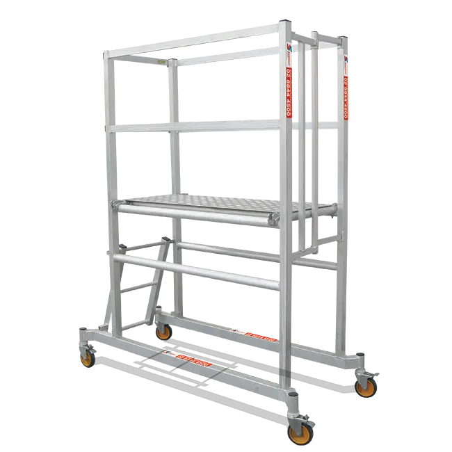 A podium Platform with Extra Room for quick and easy deployment in narrow, indoor, or confined spaces. Inspect, work, and maintain with this nifty platform.