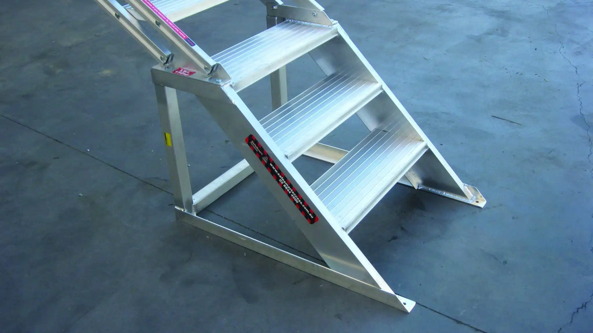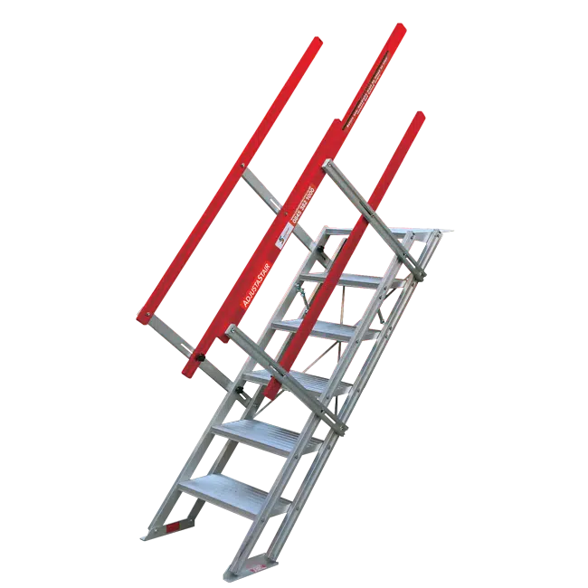 AdjustaStairs is a leading portable stairs product that brings added safety and efficiency to worksites in many industries. Compliant with AS/NZS 1576 : 2019, AdjustaStairs replaces dangerous ladders and other makeshift forms of low level height access, thanks to its lightweight yet strong aluminium construction, self-levelling stairs to accommodate a variance of pitch angles and 150kg weight rating.