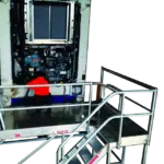 The spacious truck access platform offers a large area for laying down tools and parts, which is essential during intricate maintenance work. Workers can safely ascend the truck access platform using a stairway set at a comfortable 45-degree angle, designed to minimise physical strain and safeguard against falls. The inclusion of handrails on either side of the steep stairway ensures that staff have support at every step.