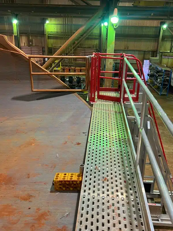 Train workshops benefit from the 2.82mH – 5.076mH variable height and loop guardrail attachment, allowing workers to easily egress on top of trams or trains.