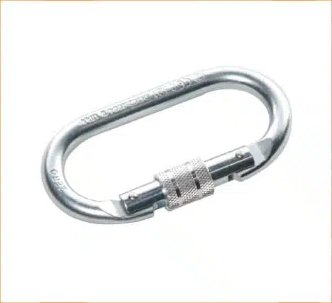 The Screw Gate Oval Carabiner is made of high tensile steel and has a lifespan of up to 10 years! Suitable for use in scaffolding, fall arrest, electrical circumstances, fire, abseiling, work positioning, total restraint, confined spaces, rescues, pole work, roofing, and construction.